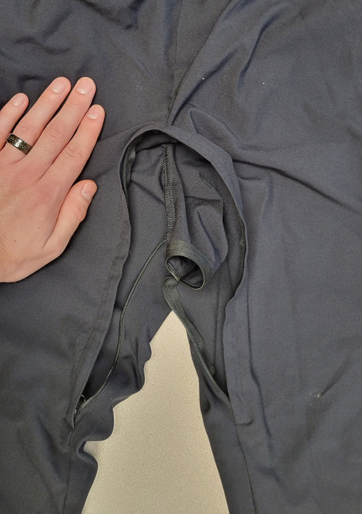 For example: Unless patients resort to wearing a hospital gown, which is not ideal especially in public, tubes such as foley catheters have to either uncomfortably go all the way down the pant leg or awkwardly hang out of the waistband. With these, you can either place the tubing to either side close to the hips, or even through the groin area where the third zipper is located. Either place would be a much better alternative.